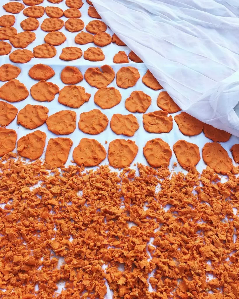Hamur yeterince olgunlaştığında küçük parçalar halinde bir çarşafın üzerine koparıp serelim. Arada bunları alt üst edelim ve içleri çekildikçe küçültelim. İşlenebilir hale gelince ki bu işlem genellikle çok uzun sürmez, bir kevgirden geçirerek toz haline getirelim. Arzu ederseniz robottan da çekebilirsiniz. Ama orijinal hali kevgirden geçirerek elde etmektir. Değirmende de öğütülebilir ama o zaman rengi kalıcı olarak beyazlıyor. Toz haline gelen tarhanamızı yine gölgede bir çarşaf üzerinde ince bir tabaka halinde serili olarak kurutalım. İyice kuruduktan sonra bez torbalara veya cam kavanozlara doldurup saklama yerine kaldıralım. Sakın bunca emek vererek hazırladığınız tarhanayı plastik poşetlere koyarak içine mikro plastikler eklemeyin.