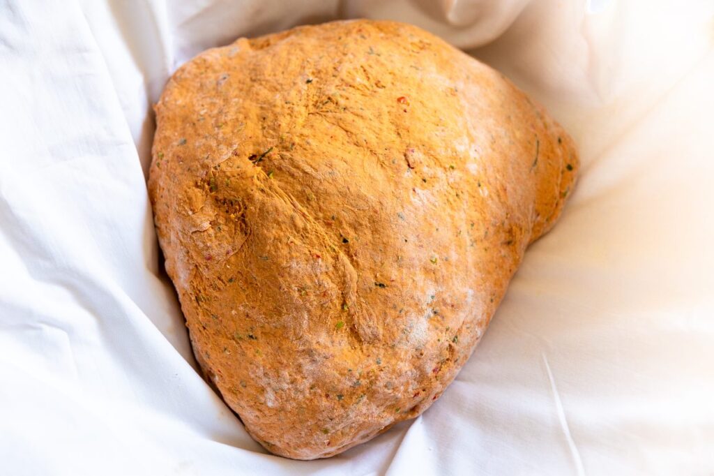 Soğuduktan sonra pişirdiğimiz bu malzemeleri de kevgirden geçirip kabuk, yaprak gibi kevgirin üstünde kalan işe yaramaz parçaları atalım. Altta pürüzsüz ve salça kıvamında bir karışımımız kalacak. Bu karışımı daha önce kevgirden geçirdiğimiz nohut ve buğdayla karıştıralım üzerine de süzme yoğurdu ekleyelim. Bu esnada yarım bardak şekerli ılık suda aktive ettiğimiz toz hamur mayasını da ekledikten sonra yavaş yavaş unumuzu ekleyerek hamur karmaya başlayalım. Sonuçta kulak memesinden biraz daha sertçe bir hamur elde edene kadar un ilave edelim. Arada tuzunu kontrol edip gerekiyorsa tuz ekleyebilirsiniz. Hamur kıvama gelince üzerine bir tülbent örterek gölge bir alanda dinlenmeye alalım. Kabardıkça karıştıralım. Bu şekilde en az 3 gün olmak suretiyle her gün düzenli olarak hamuru karıştırıp üzerini tülbentle örtelim. Kapak örterseniz hamur sulanır. Eğer çok ekşi istiyorsanız bekletmeye devam edin. Ama bana göre en fazla 7 günlük bekletme yeterli. Bazen 3 günde de arzu edilen ekşiliğe geliyor.